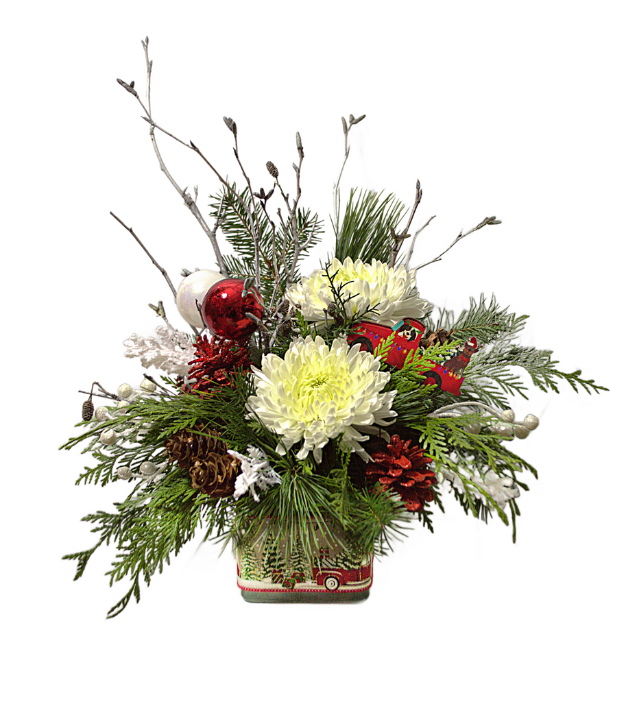 A celebration of nature's beauty and the spirit of the season. Crafted to evoke the cozy charm of a woodland retreat during the holidays, this arrangement brings together the richness of the forest and the festive hues of Christmas.